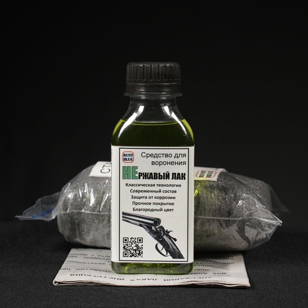 Набор для воронения №1 НЕржавый лак - 100мл. Стальная вата - 50гр. Жидкость для удаления воронения - 100мл. Инструкция. |